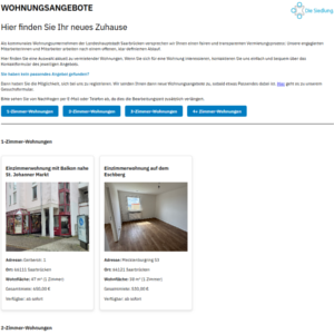 Die städtische Baugesellschaft suchte eine digitale Lösung zur Veröffentlichung freier Wohnungen. Der Auftrag erfolgte auf Empfehlung eines bestehenden Kunden aus dem Intranet-Projektumfeld.